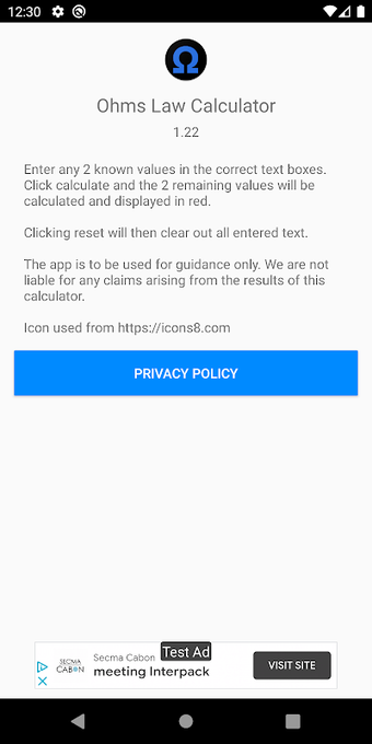 محول قانون أوم متاح لنظام الأندرويد 13.0 وما فوق. الإصدار الحالي للتطبيق هو 1.32.